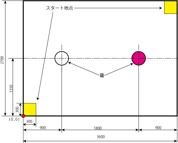 ただし,競技前でロボットの大きさのチェックを行いますが,これは,300x300x400mmの箱(枠)を被せる形になります.